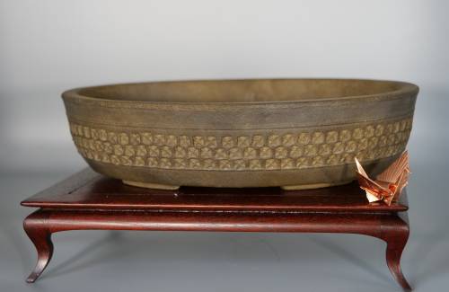 Une poterie bonsai est tel le cadre d'un tableau, elle fait partie de l'oeuvre sans pour autant en être l'élément principal. Son choix doit répondre à des critères aussi bien horticoles (le bonsai doit y pousser correctement) mais également esthétique. C'est donc plus qu'un simple contenant de culture. Si pendant les premières années de la formation d'un arbre, le choix de la poterie n'a que peu d'importance, progressivement il gagne le statut de bonsai. Les traces de l'Homme se sont effacées, cette maturité et cette patine issues d'années d'un travail appliqué sont maintenant présentes. Il est temps d'offrir une poterie de qualité à votre bonsai.